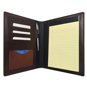 Carpeta ejecutiva para block de notas de piel sintética imitación Cordovan tamaño carta personalizada. Disponible en 3 colores.