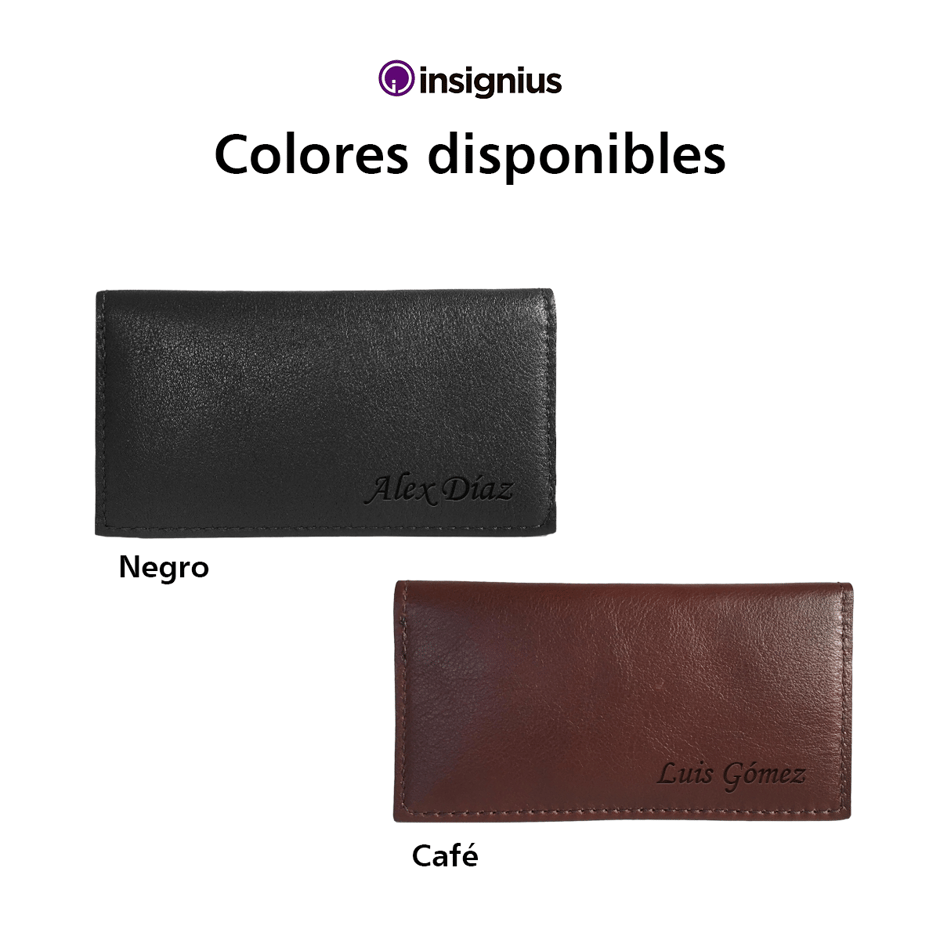 Cartera billetera larga elaborada en piel de vacuno, con forros de vaqueta sintética. Insignius México fabrica este producto utilizando una