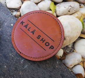 Porta vasos circulares en piel sintética tipo Cordovan personalizados.