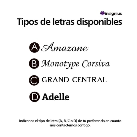 Una vez que compres y tengamos tus datos nos pondremos en contacto directamente vía correo electrónico o WhatsApp para ver contigo todos los detalles de tu pedido: el color, texto, ubicación y tipo de letra del grabado.