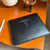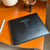 Funda para recetarios médicos tamaño media carta horizontal fabricada en piel exclusiva importada imitación Cordovan de la más alta calidad, con un diseño profesional y espacios para tarjetas de presentación.