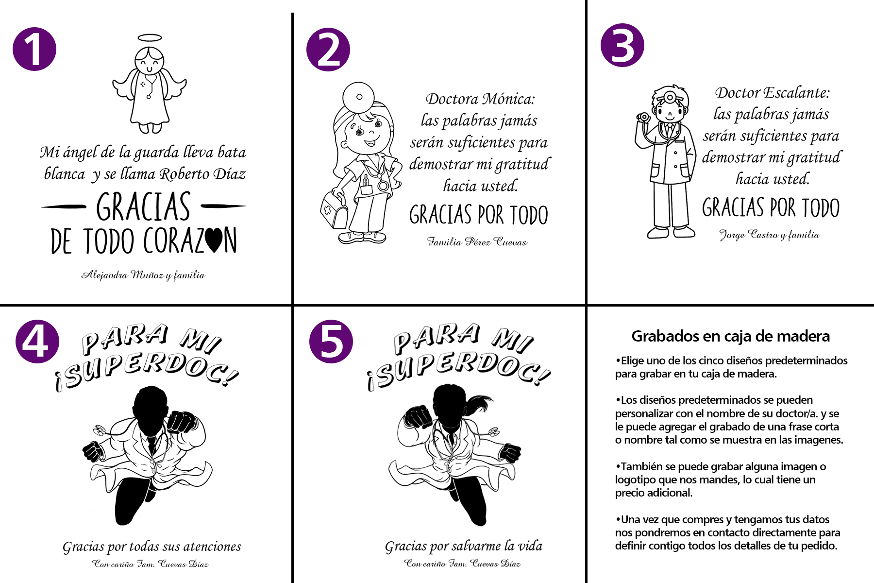 Una vez que compres y tengamos tus datos nos pondremos en contacto directamente vía correo electrónico o WhatsApp para ver contigo todos los detalles de tu pedido: el color, texto, ubicación y tipo de letra del grabado.