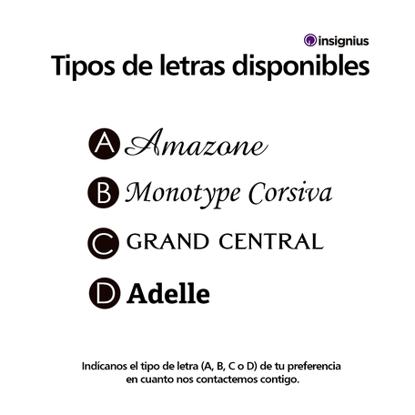 El grabado Láser: En láser podemos grabar el texto que desees. Para este tipo de grabado puedes elegir uno de nuestros 4 tipos de letra que te
